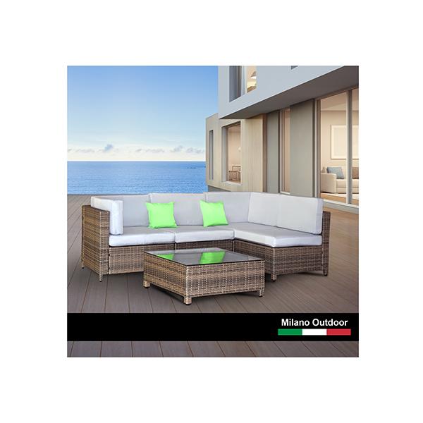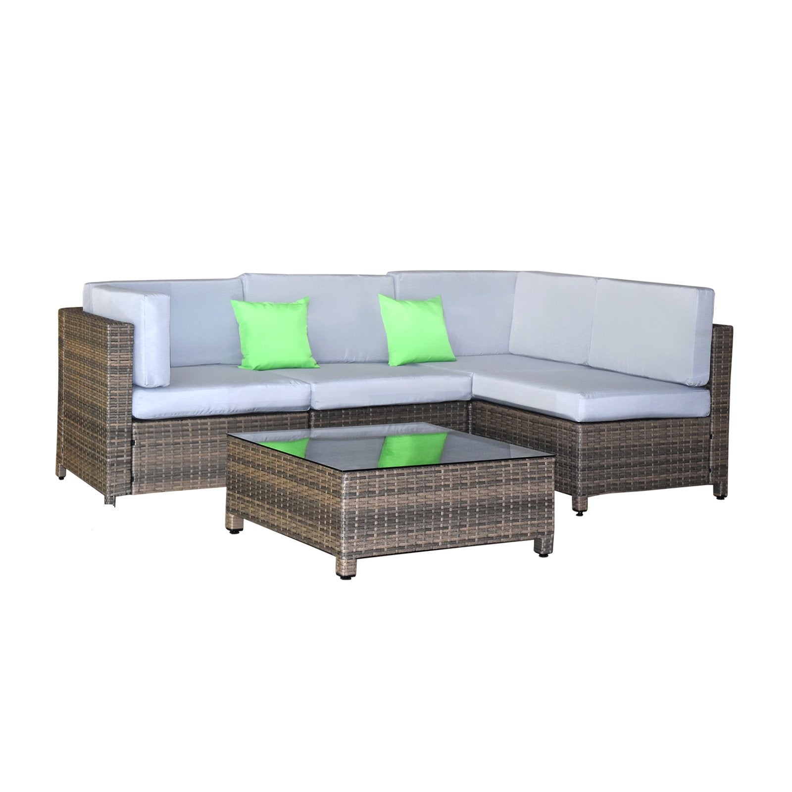 5 Pcs Outdoor Sofa Set Rattan Oatmeal Black Patio Lounge -