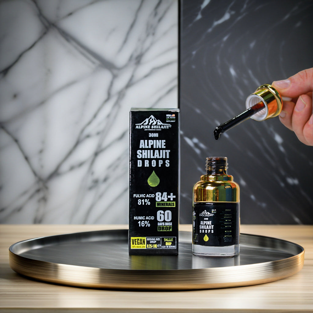 Alpine Himalayan Shilajit Drops Gold Grade 30ml Sun-Dried 85+ Minerals 70% Fulvi